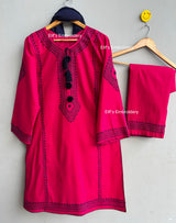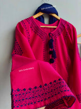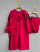 Expertly hand embroidered with delicate pink katcha tanka, the Rosy Resham 3pc suit is a stunning addition to any wardrobe. Elevate your style with this intricate and beautifully crafted suit, perfect for any special occasion.