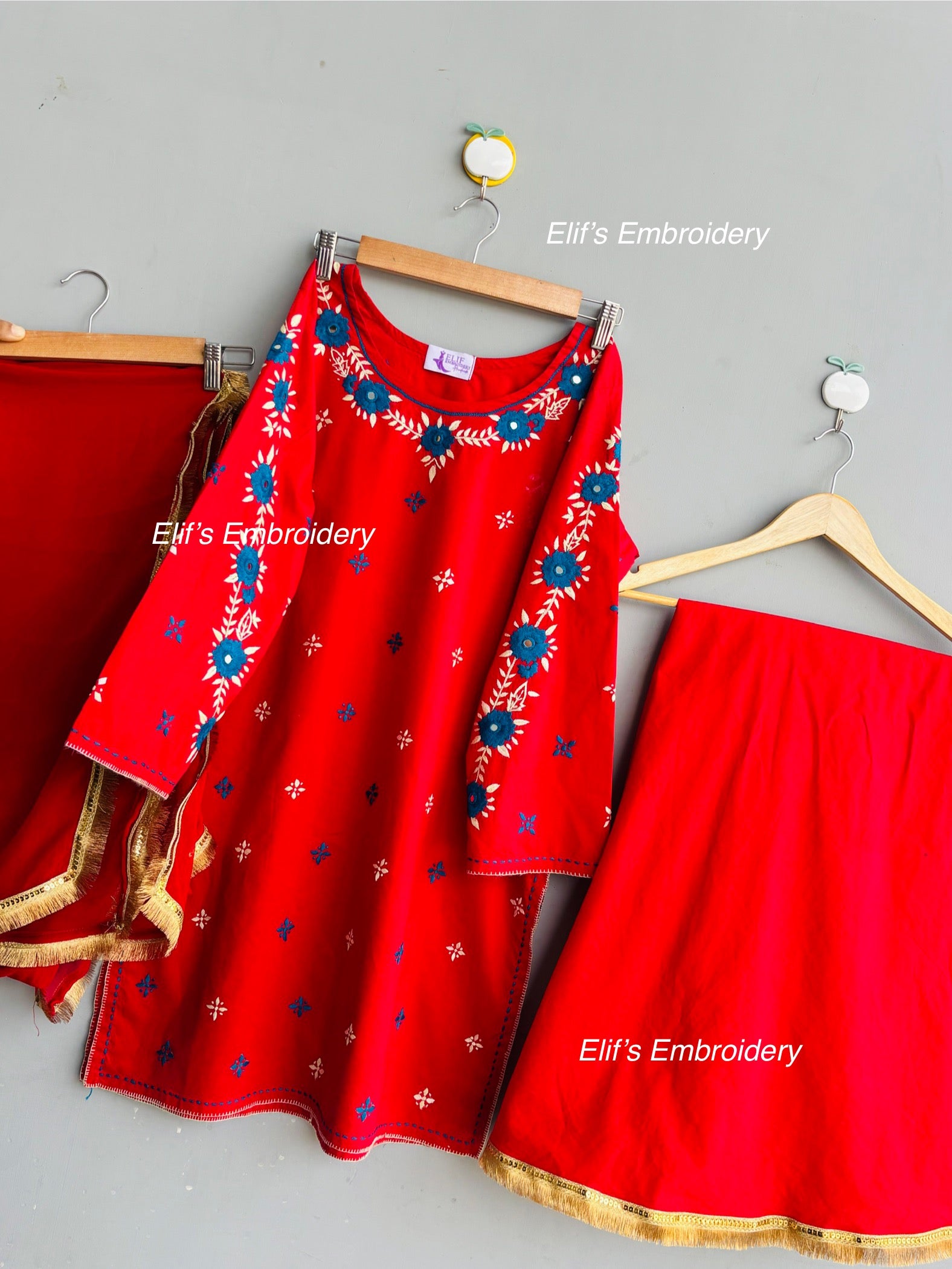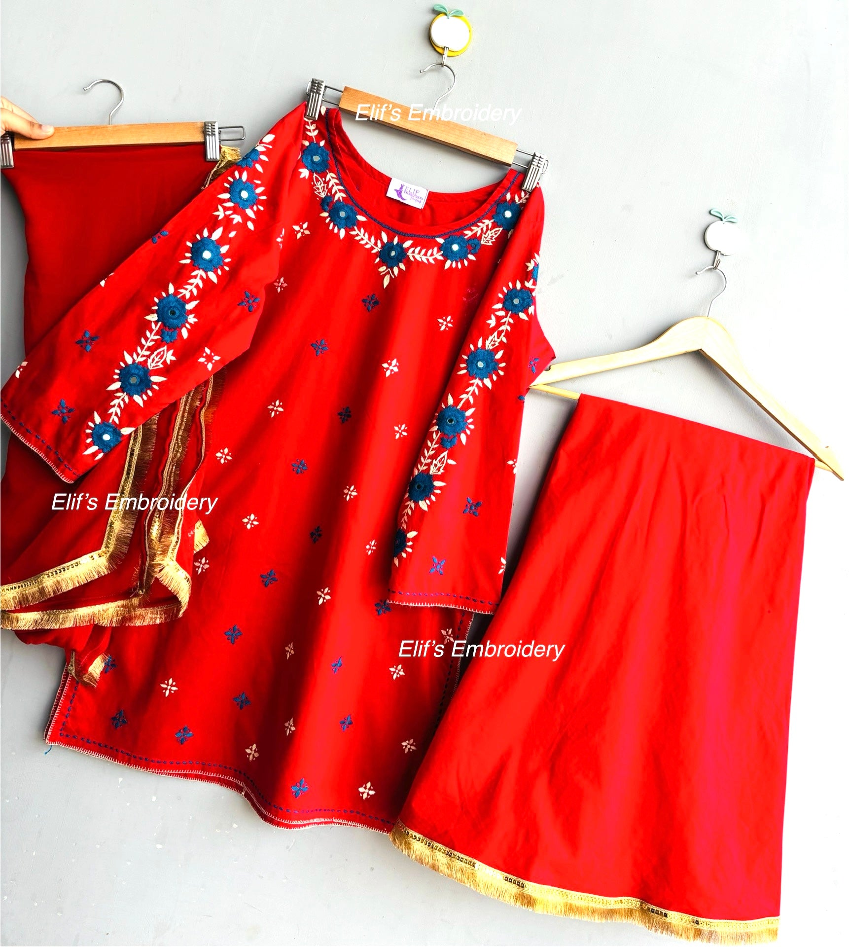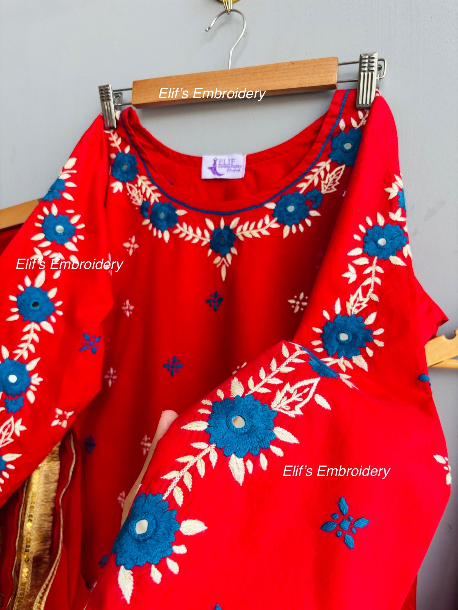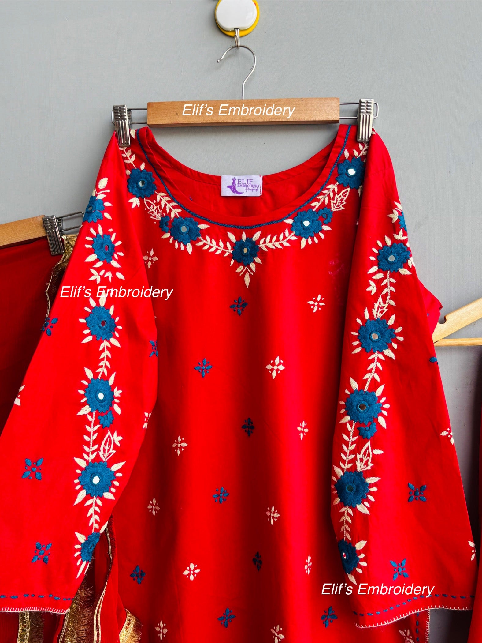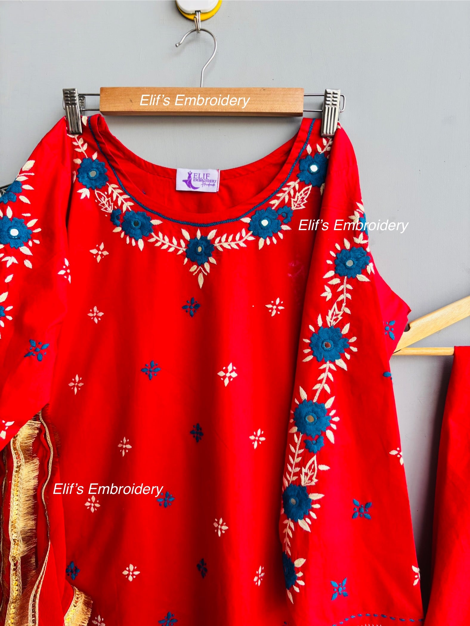 Elevate your wardrobe with the Arwa 3Pc Hand Embroidered Suit, a masterful blend of traditional craftsmanship and contemporary elegance. This meticulously crafted ensemble features intricate hand embroidery that highlights the artistry and attention to detail. Designed for comfort and style, the three-piece set offers versatility for both formal occasions and refined everyday wear. Experience the luxury of handcrafted quality that enhances your presence with every wear.