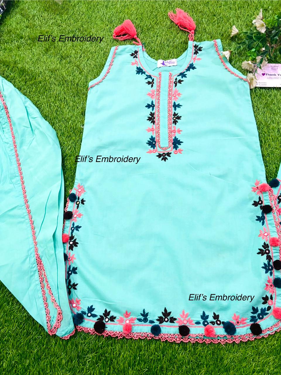 Elif - Kids Sky Blue Hand Embroidered Collection Crafted with meticulous attention to detail, this sky blue hand-embroidered piece showcases traditional artisanal techniques. Each design is individually embroidered by skilled artisans, ensuring no two pieces are identical. The soft, calming blue tone makes it perfect for children, while the intricate embroidery adds timeless elegance. Durable and thoughtfully made, this handmade creation combines comfort with authentic craftsmanship. Ideal for special occasions or everyday wear, it's a testament to quality and heritage.