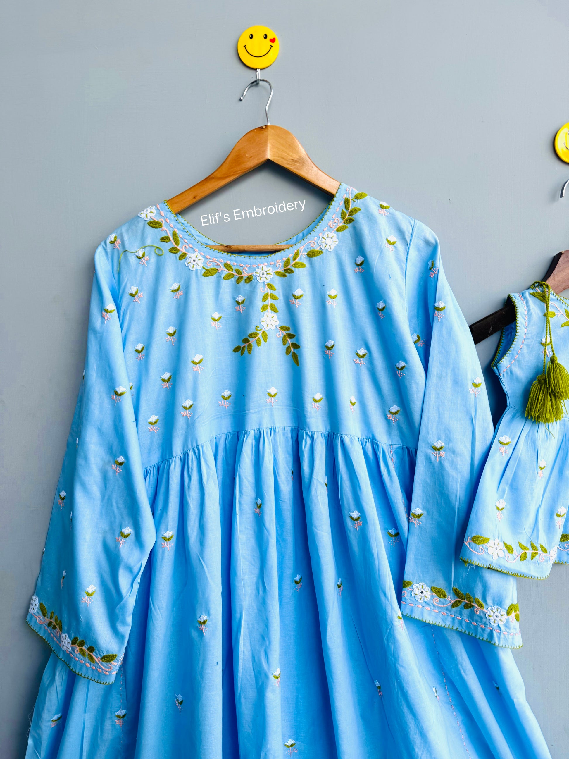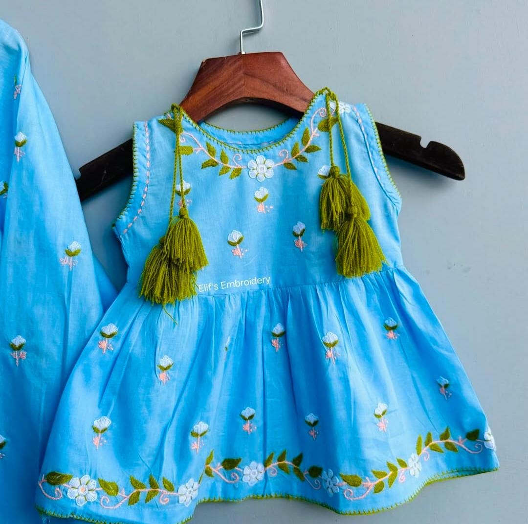 Elevate your childs' style with our Elif Sky Blue suit. Hand embroidered with our signature elif design, this mother-daughter set is the perfect addition to any wardrobe. Make a statement in sky blue and showcase your unique bond with your little one. Timeless and elegant, this suit is perfect for any occasion.