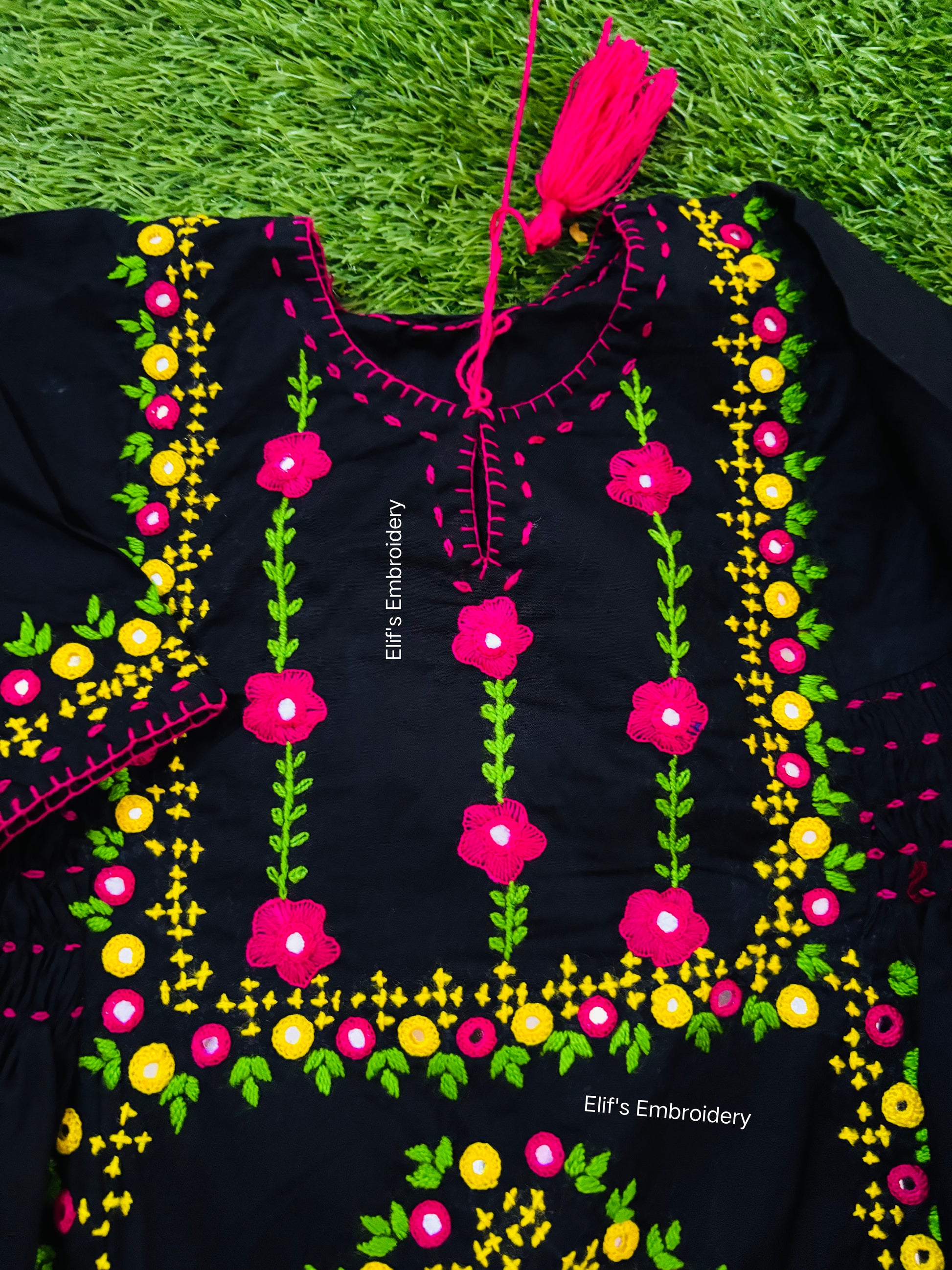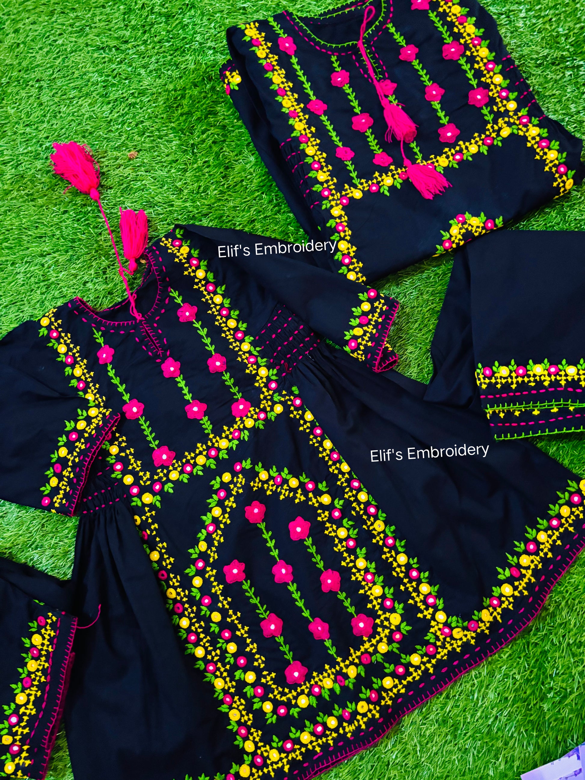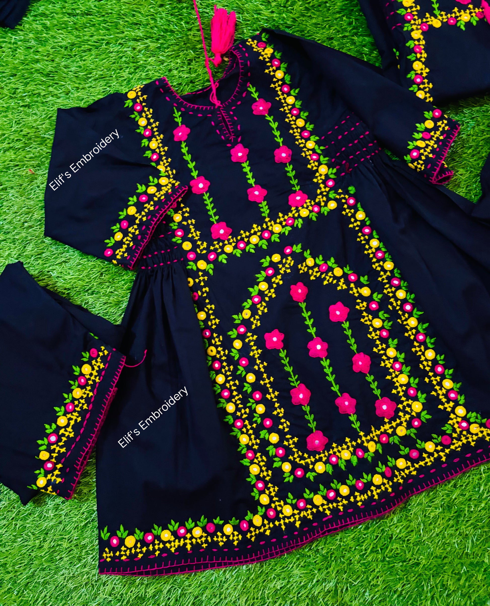 The Elvina suit showcases exquisite hand embroidery tailored for both children and adults, combining traditional techniques with modern aesthetics. Each piece is crafted with precision to ensure durability and comfort, making it an ideal choice for formal events or cultural celebrations. This suit exemplifies skilled craftsmanship and timeless elegance, suitable for discerning customers who appreciate artisanal quality.