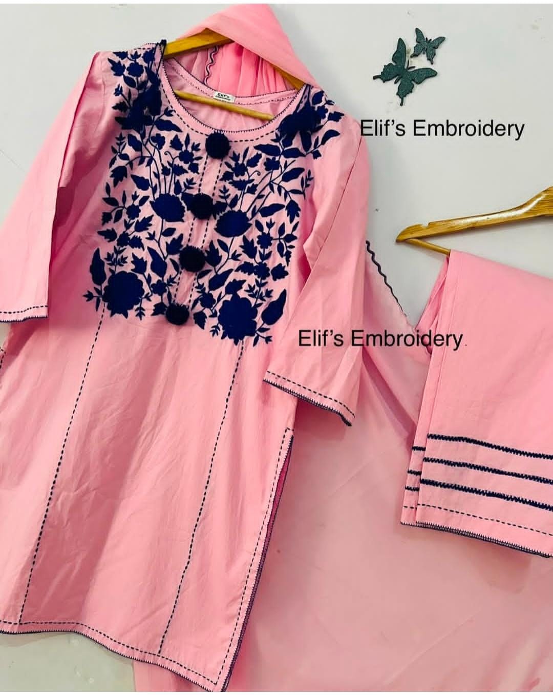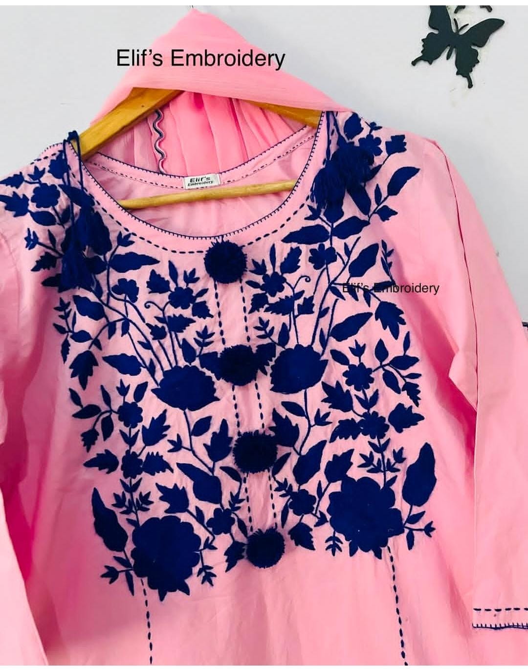 Elevate your wardrobe with our exquisite Gulalai 3Pc Hand Embroidered suit. This stunning pink ensemble features intricate blue embroidery meticulously crafted by skilled artisans. The delicate contrast between the vibrant pink fabric and detailed blue needlework creates a sophisticated aesthetic perfect for special occasions. Each stitch reflects traditional craftsmanship while offering contemporary elegance.