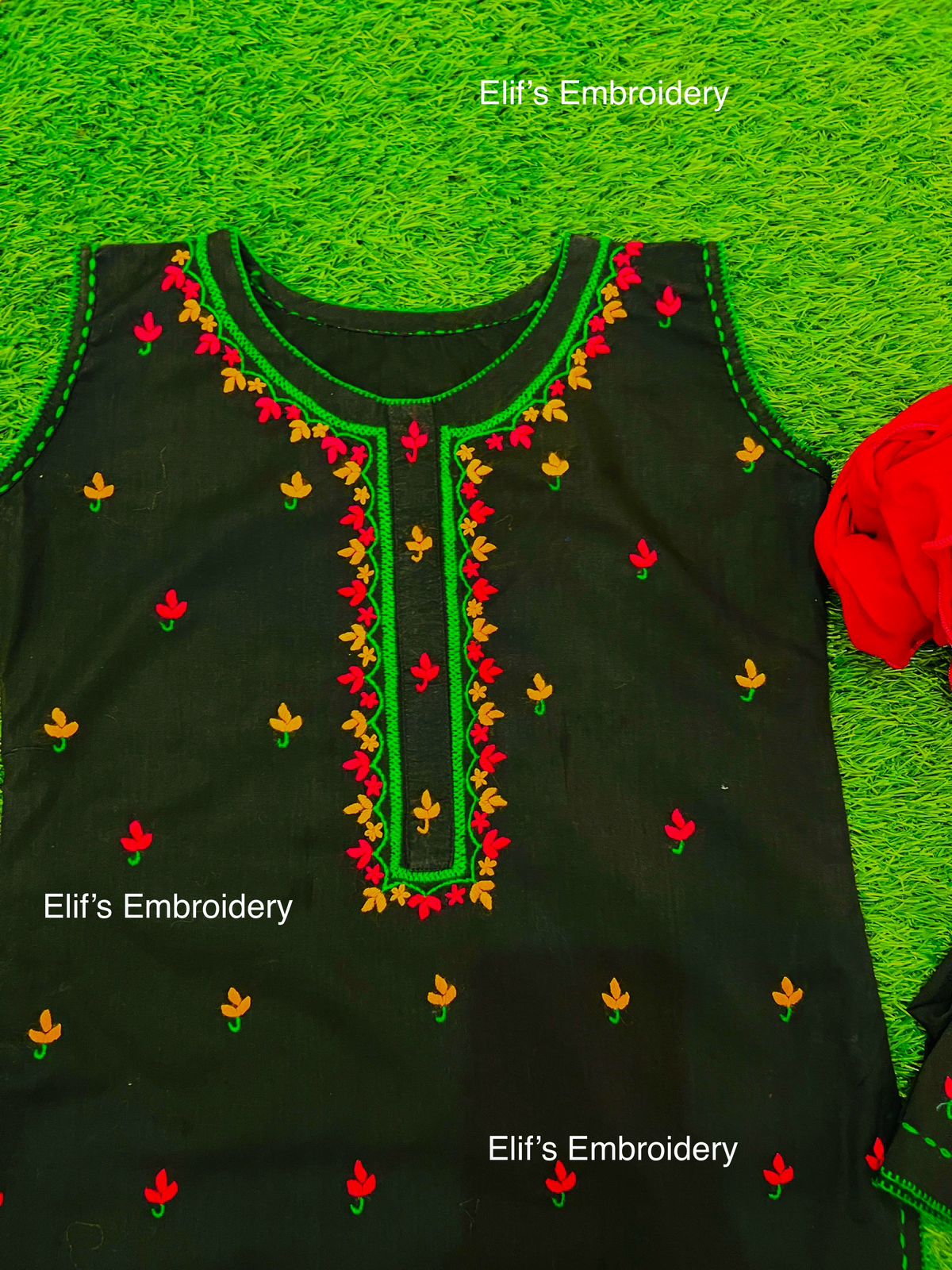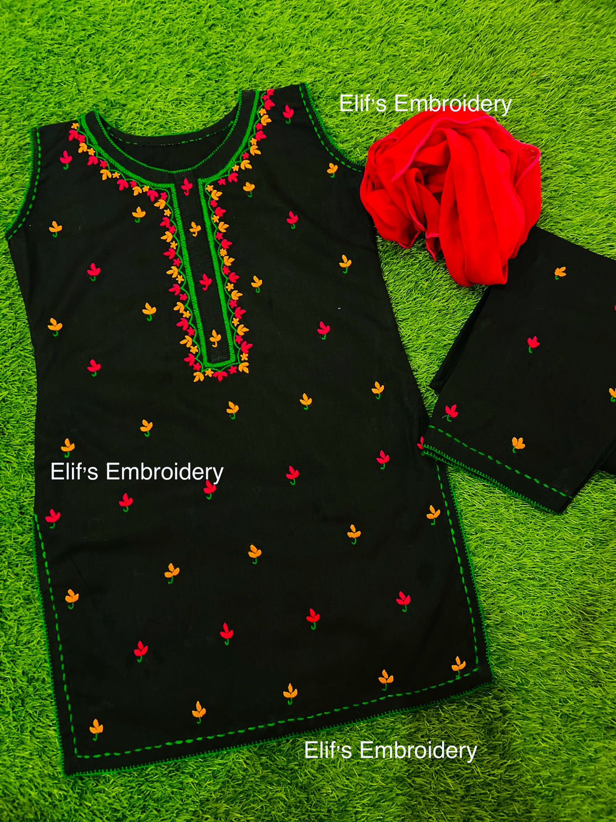 Introducing Noura Kids - a sleek black suit with vibrant, hand-embroidered accents. Made with quality materials and expert craftsmanship, this suit exudes sophistication and style for your little one. Elevate their wardrobe and make a statement with Noura Kids.
