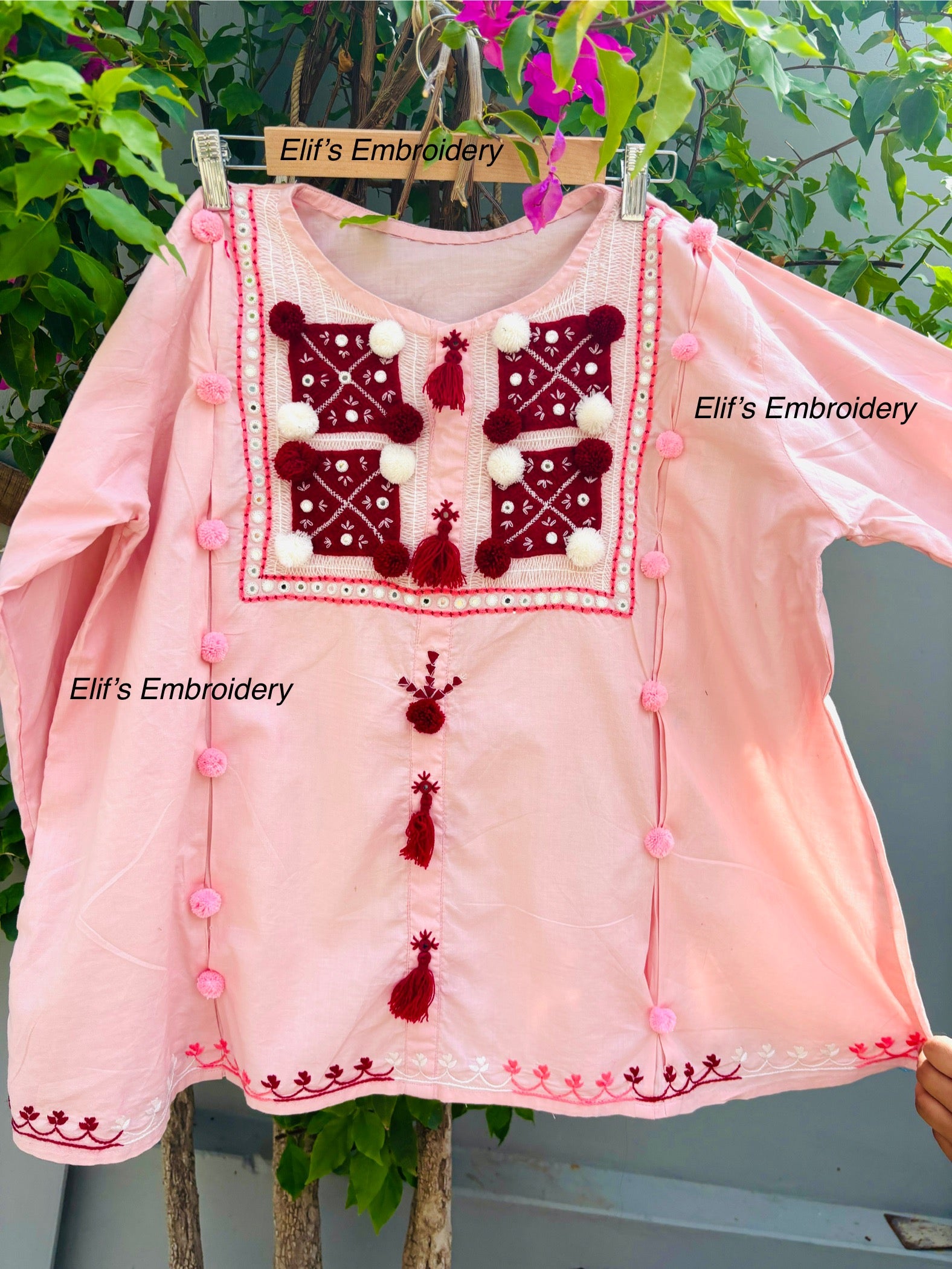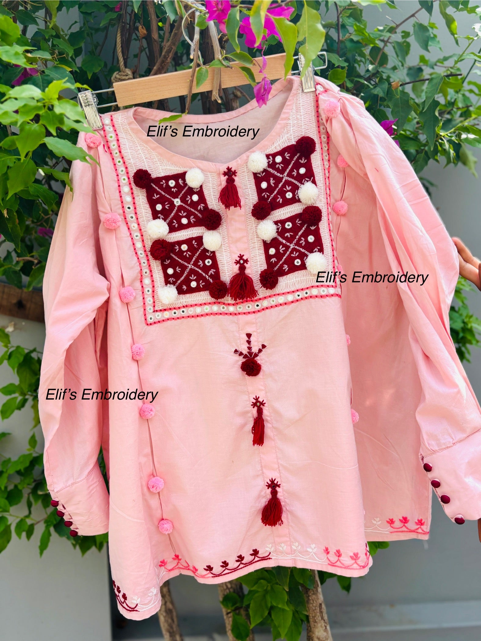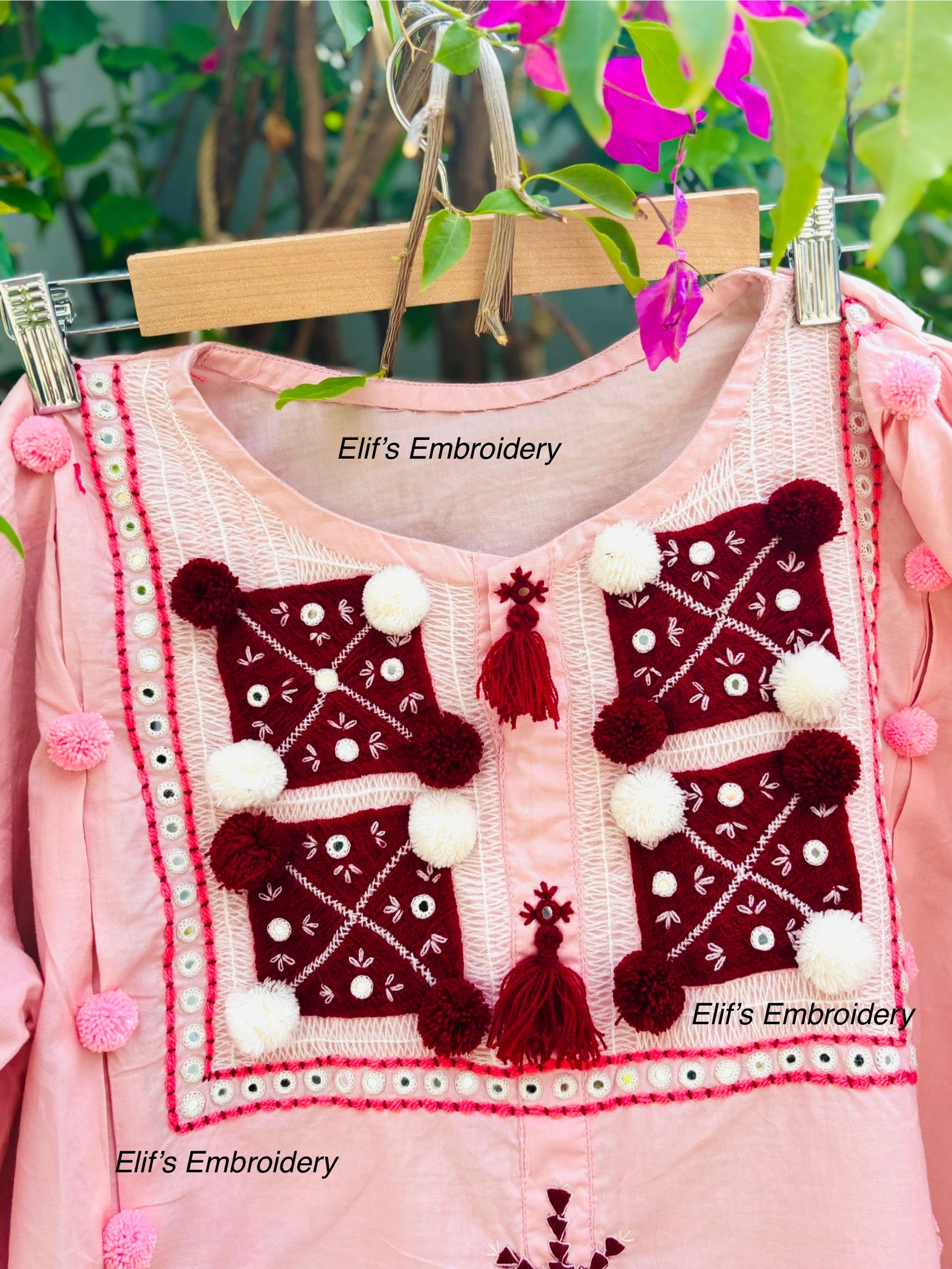 This exquisite pink hand-embroidered suit features intricate craftsmanship that highlights traditional artistry with a contemporary touch. The delicate embroidery enhances the fabric’s elegance, making it perfect for formal occasions or festive gatherings. Designed with attention to detail, this 2-piece ensemble offers both comfort and style, reflecting expert tailoring and timeless beauty.