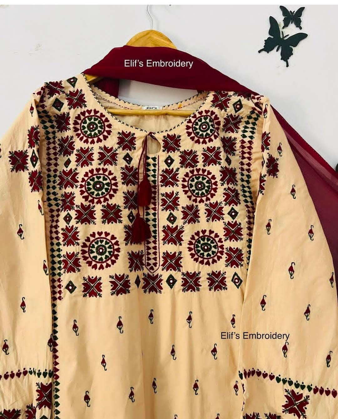 Elevate your wardrobe with our exquisite Sahar 3Pc Hand Embroidered Suit. Meticulously crafted with traditional techniques, this ensemble features intricate hand embroidery that showcases exceptional artisanship. The harmonious color palette and sophisticated design elements make this suit perfect for special occasions while ensuring comfort throughout wear. Each stitch reflects our commitment to preserving cultural heritage through contemporary fashion.